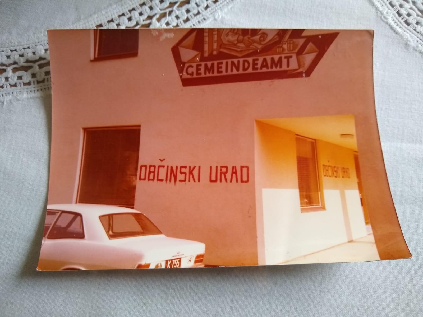 Die slowenische Bezeichnung „Občinski urad“ für Gemeindeamt (Globasnitz/Globasnica)© Familie/Družina Kogoj, privat