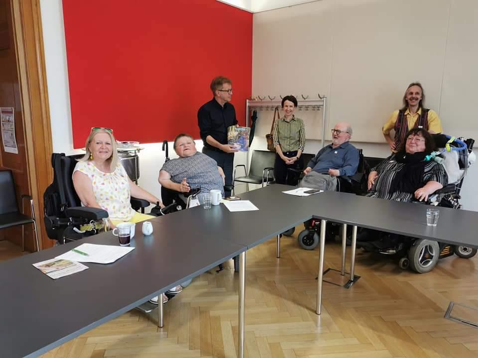 Gemeinsam mit Bernadette Feuerstein, Monika Schmerold und Volker Schönwiese von SLIÖ (Selbstbestimmt Leben Österreich), sowie der ehmaligen Nationalratsabgeordneten und Behindertensprecherin der Grünen, Theresia Haidlmayr, hat die Initiative Minderheiten am 1. Juli 2020 Rudi Anschober die neue STIMME-Spezialausgabe zum Thema „100…