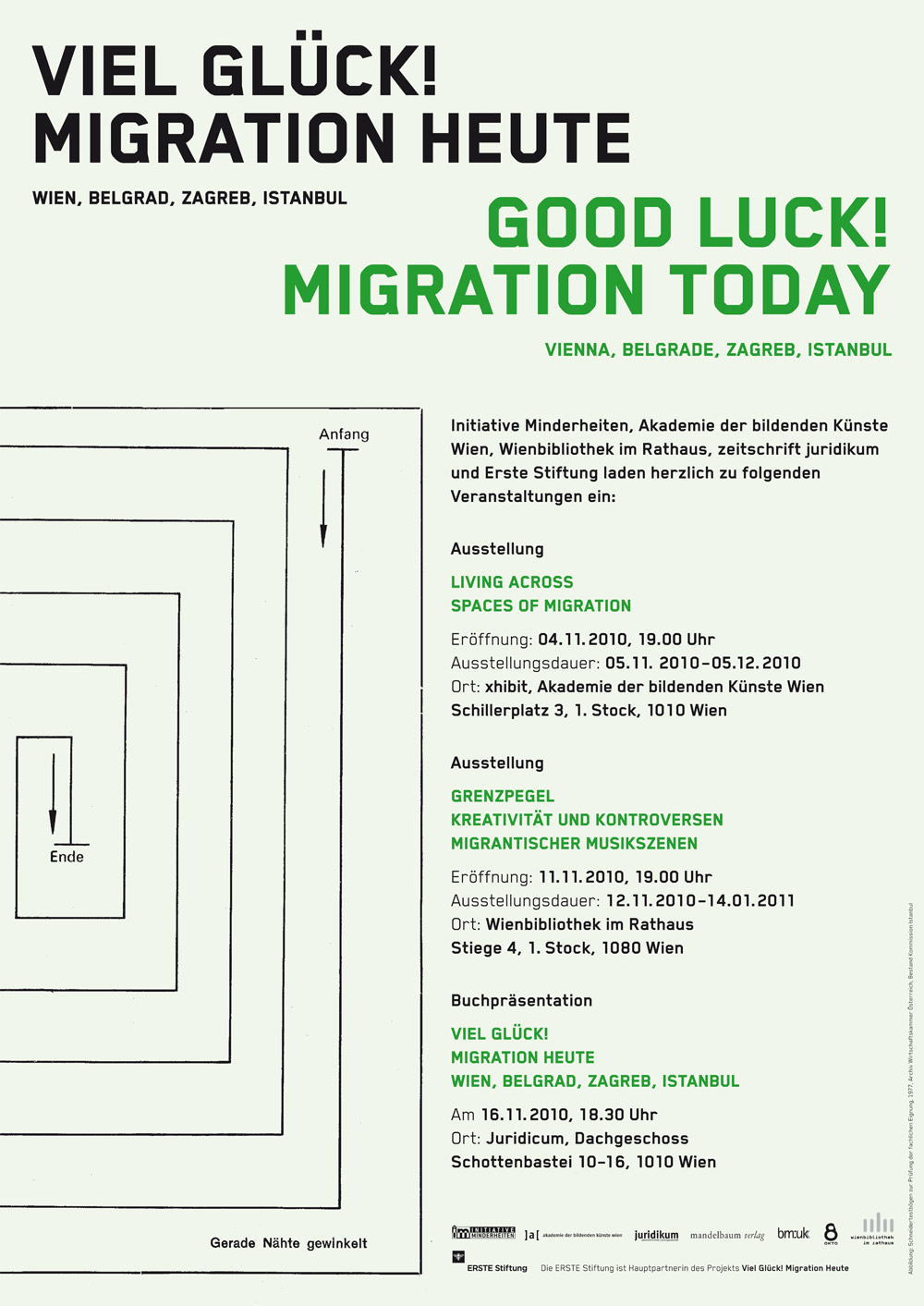 Ausgehend vom Ausstellungsprojekt „Gastarbajteri. 40 Jahre Arbeitsmigration“ wurde von der Initiative Minderheiten, einem transnationalen Team, der ERSTE Stiftung und andere kooperierenden Einrichtungen das Nachfolgeprojekt „Viel Glück! Migration heute. Wien, Belgrad, Zagreb, Istanbul“ initiiert, das sich mit Migrationsbewegungen und –politiken in…